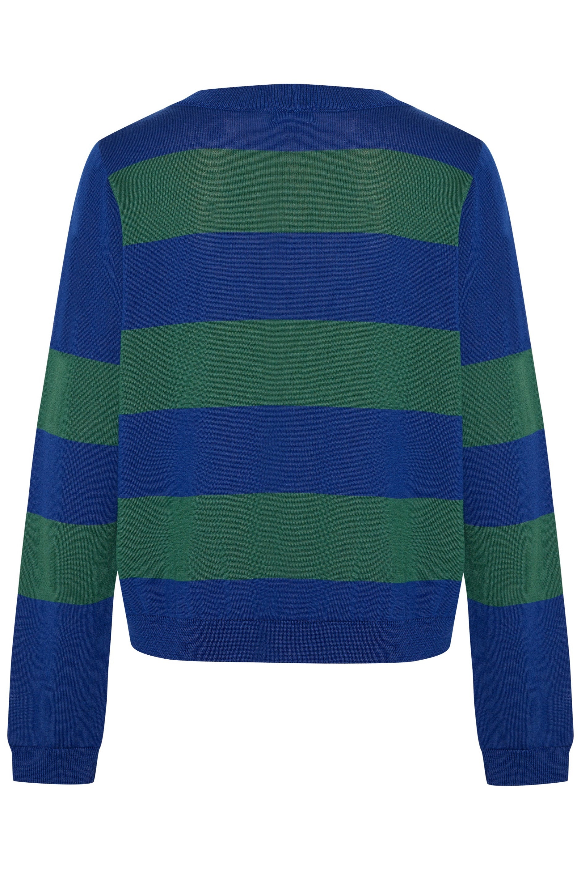 Hochwertig, weich und stilvoll: Der Pullover im Blockstreifen-Design kombiniert kräftiges Blau und Grün mit luxuriöser Merinowolle. Atmungsaktiv, temperaturausgleichend und vielseitig kombinierbar – ein Must-have für jede Garderobe. Die Bündchen und die Halsblende sind gerippt und verstärkt gestrickt. Das heißt mit doppeltem Faden. Er unterscheidet sich von dem feinen Rundhalspullover, weil das Garn etwas stärker ist.