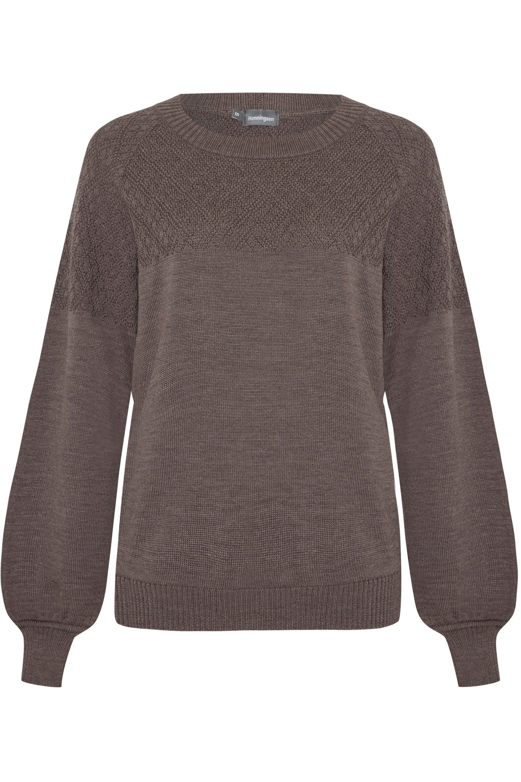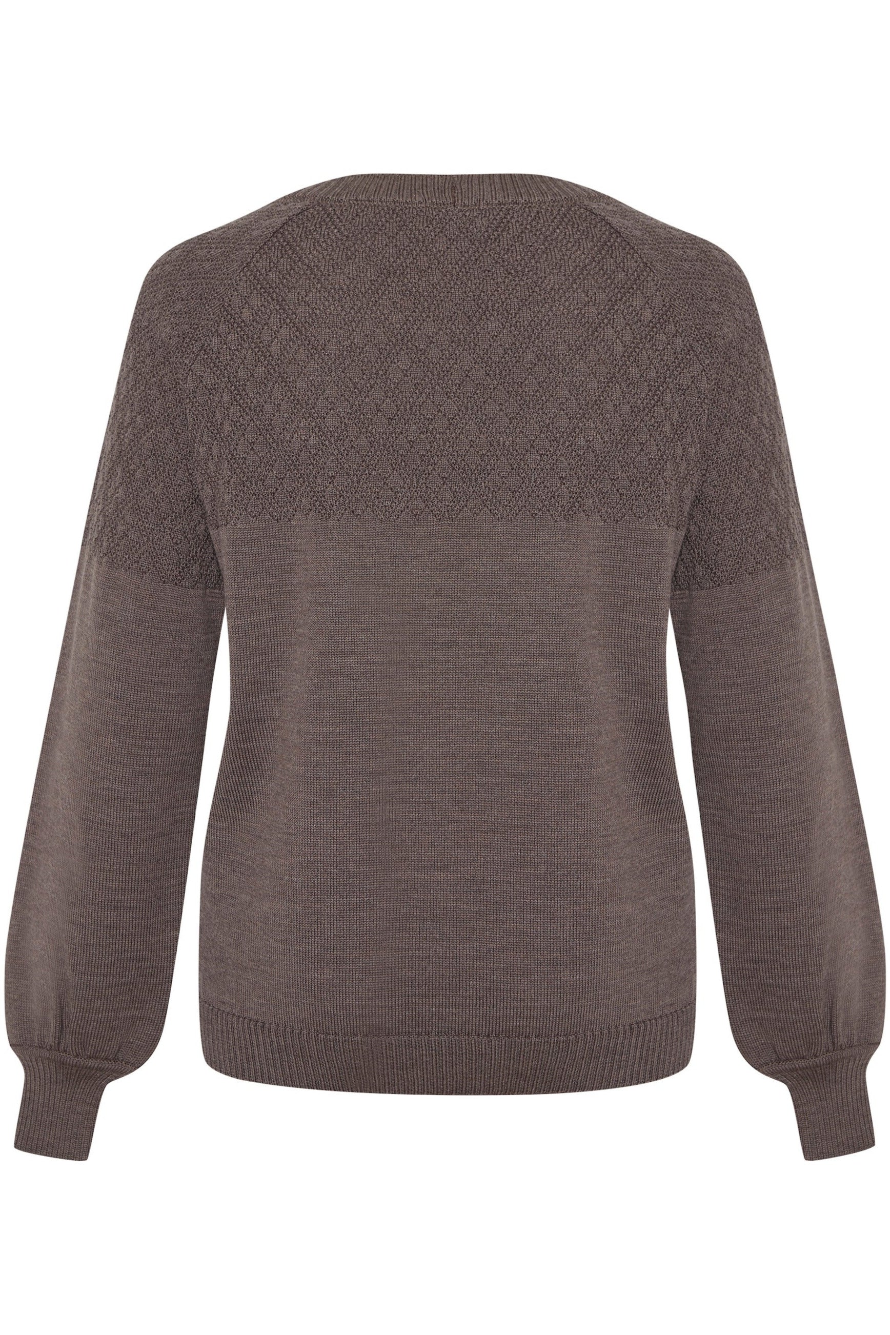 Die "ton in ton" gestrickte Passe im Rautenmuster verleiht dem Modell eine dezente, stilvolle Struktur. Er ist in einer mittleren Feinheit gestrickt und ist weich und wärmend zugleich. Der lässige Schnitt sorgt für ein entspanntes Tragegefühl, während die edle Verarbeitung und die harmonische Farbgebung den Pullover zu einem zeitlosen Begleiter machen. Perfekt für stilvolle Winter-Looks.