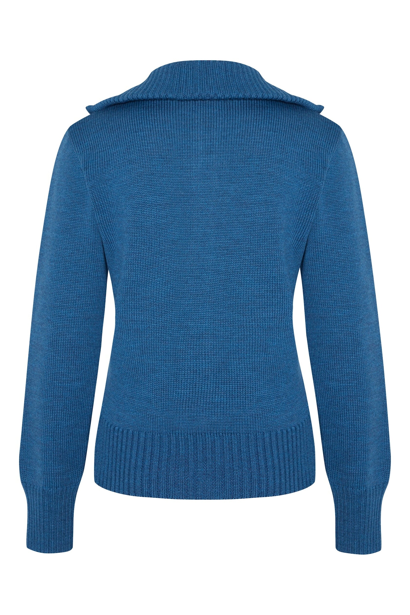 Diese Troyerstrickjacke ist ein absoluter Klassiker und ein langlebiger Begleiter. Nicht nur bei winterlichen Temperaturen. Sie passt sich unkompliziert jedem Kleidungsstil an. Der doppelt gelegte Kragen lässt sich hoch verschließen. Er hält wunderbar warm und ersetzt somit den Schal.